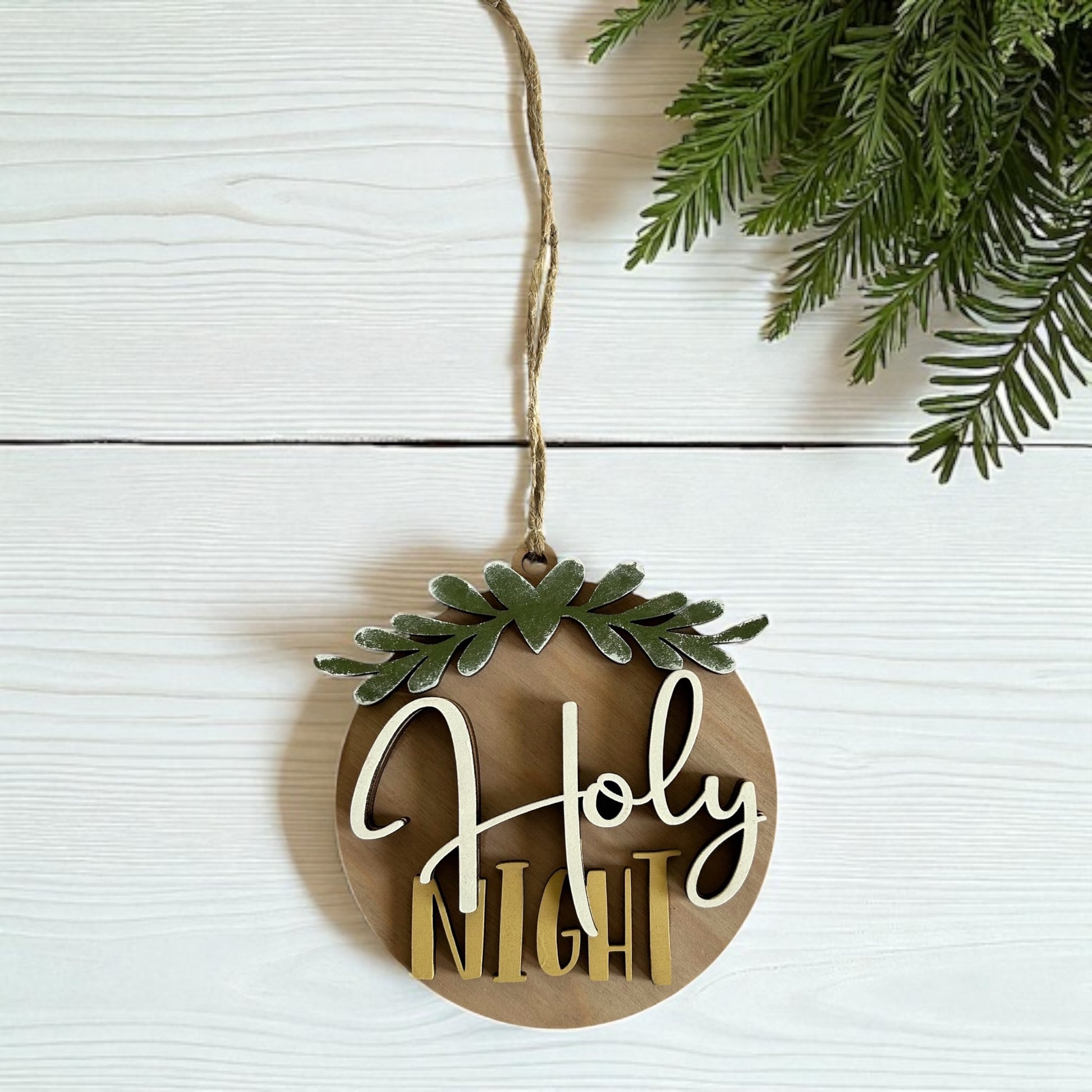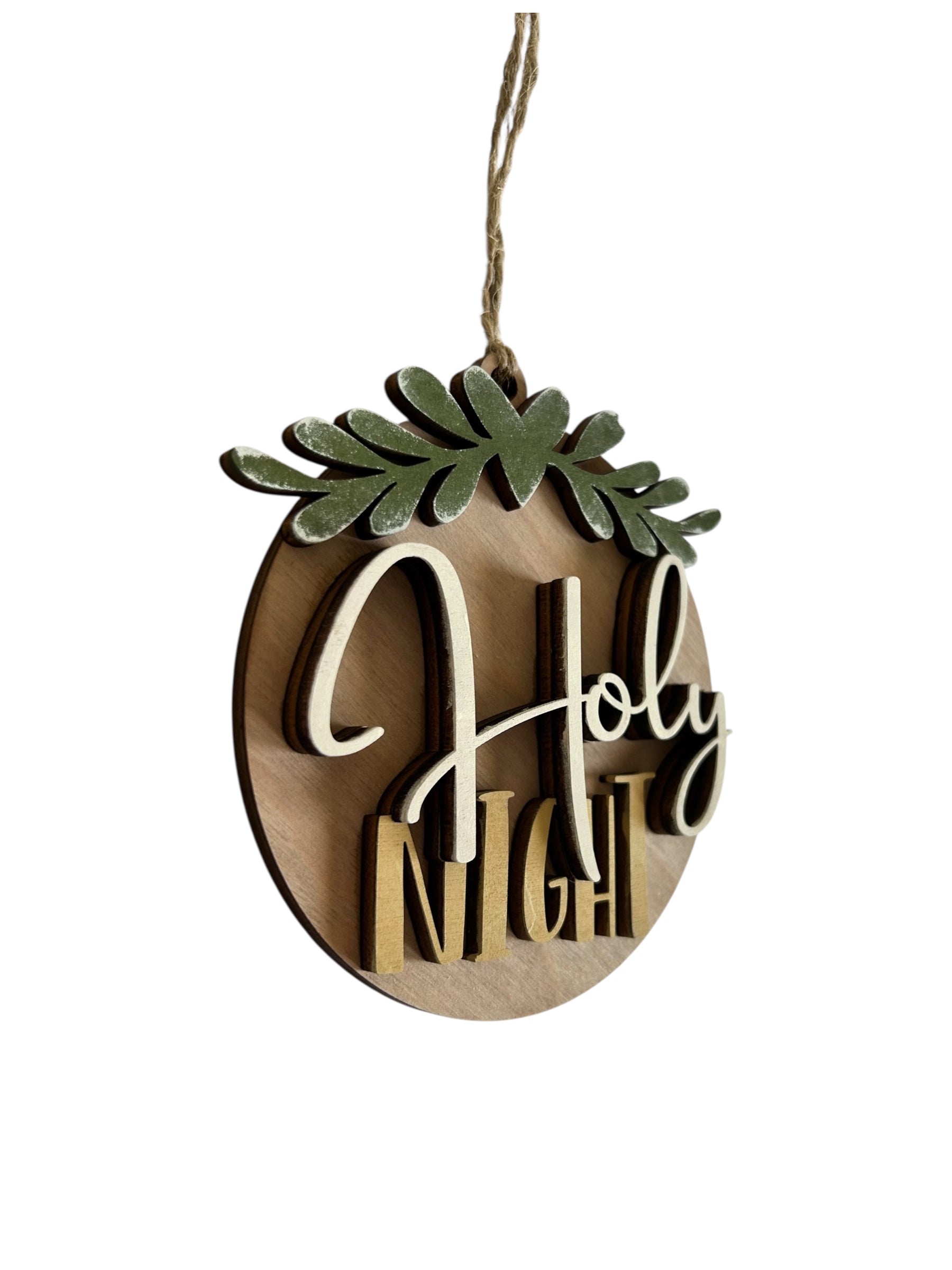 This sweet Christmas ornament is created from multiple layers of wood and hand painted. Simple twine string to keep the rustic charm. Comes packed ready for gift giving.
