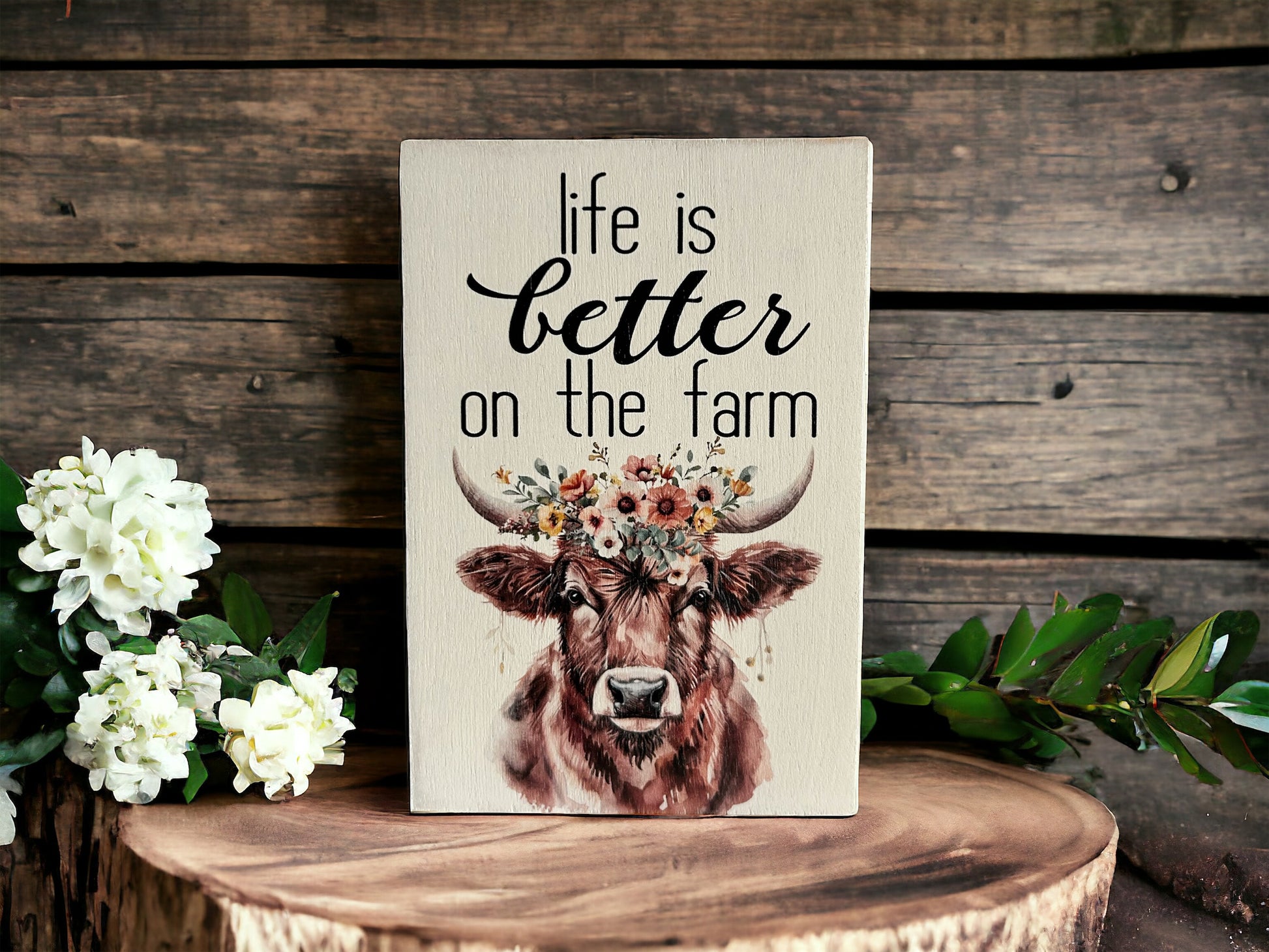 Embrace the rustic charm of farm life with our "Life is Better on the Farm" Wood Tabletop Sign! Measuring 4 inches by 6 inches, this tabletop sign is perfect for adding a touch of country farmhouse style to any surface. It’s designed to stand upright on tabletops, shelves, or desks, serving as a reminder of the simple joys of rural living.