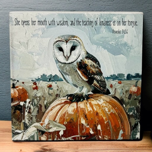 Owl Wisdom - Autumn/Fall Decor Rustic Wood Bible Verse Sign