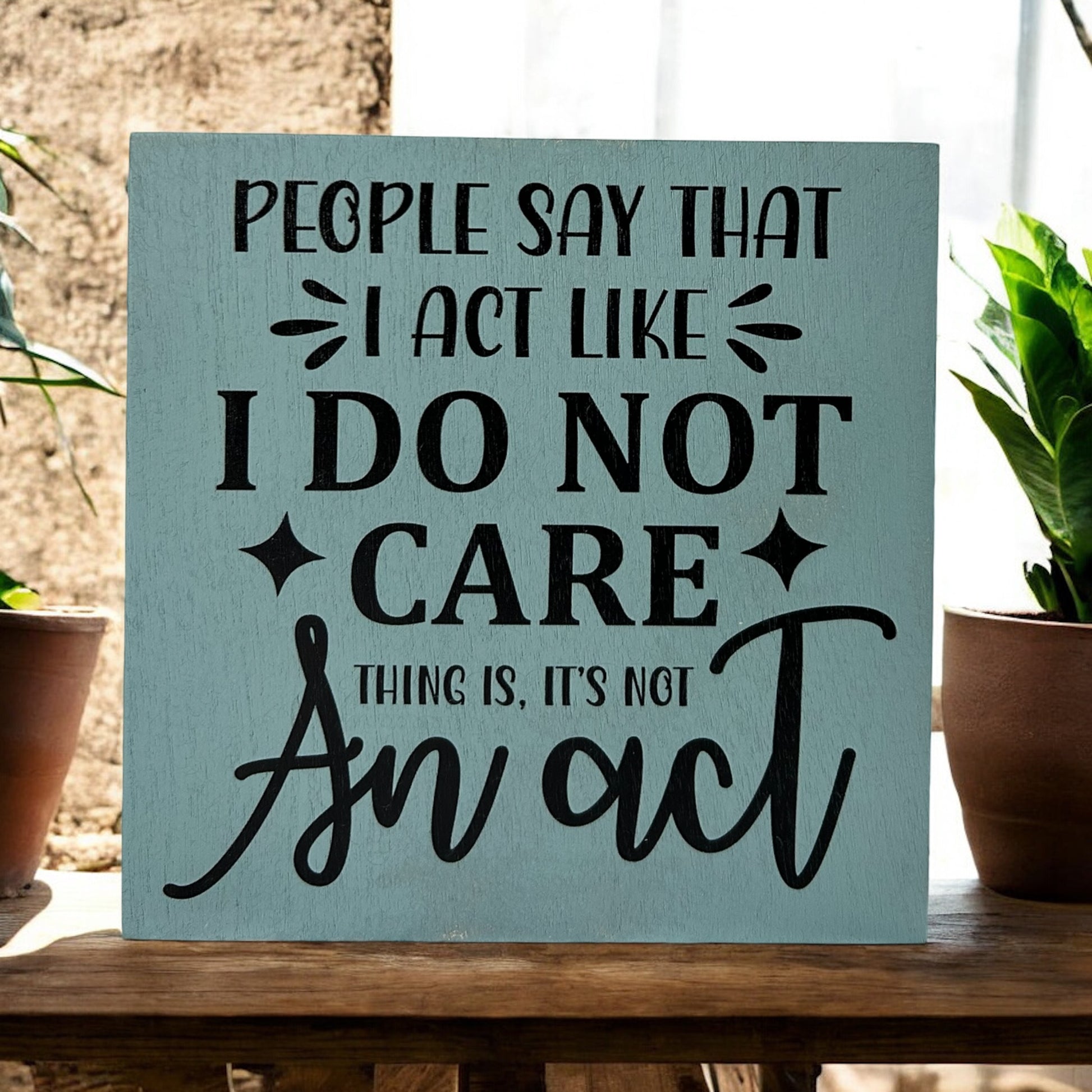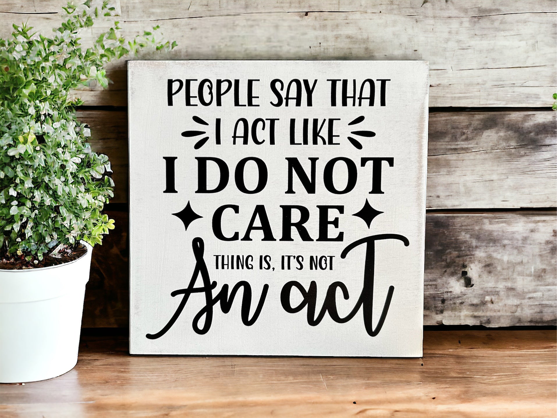 People Say I Act Like I Do Not Care - Rustic Wood Sign