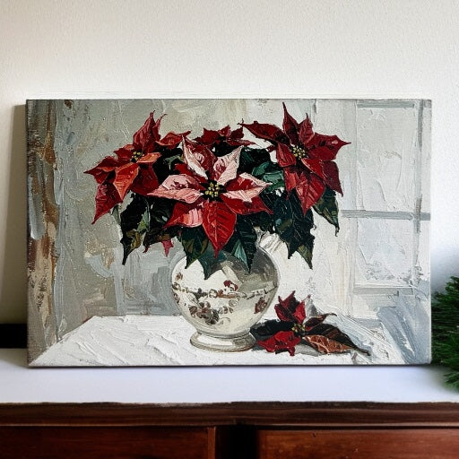 Poinsettias in a Vase- Wood Sign Painting Christmas Decor