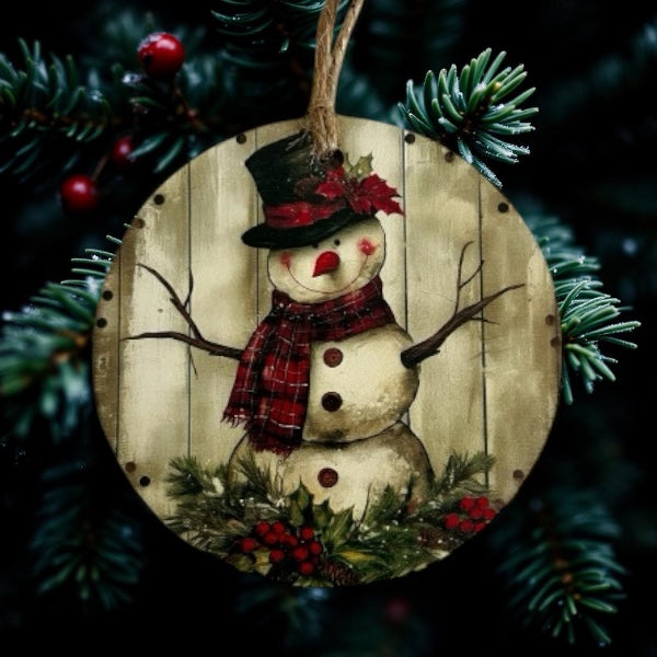 Primitive Snowman-Vintage Style Wood Ornament