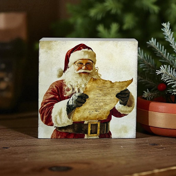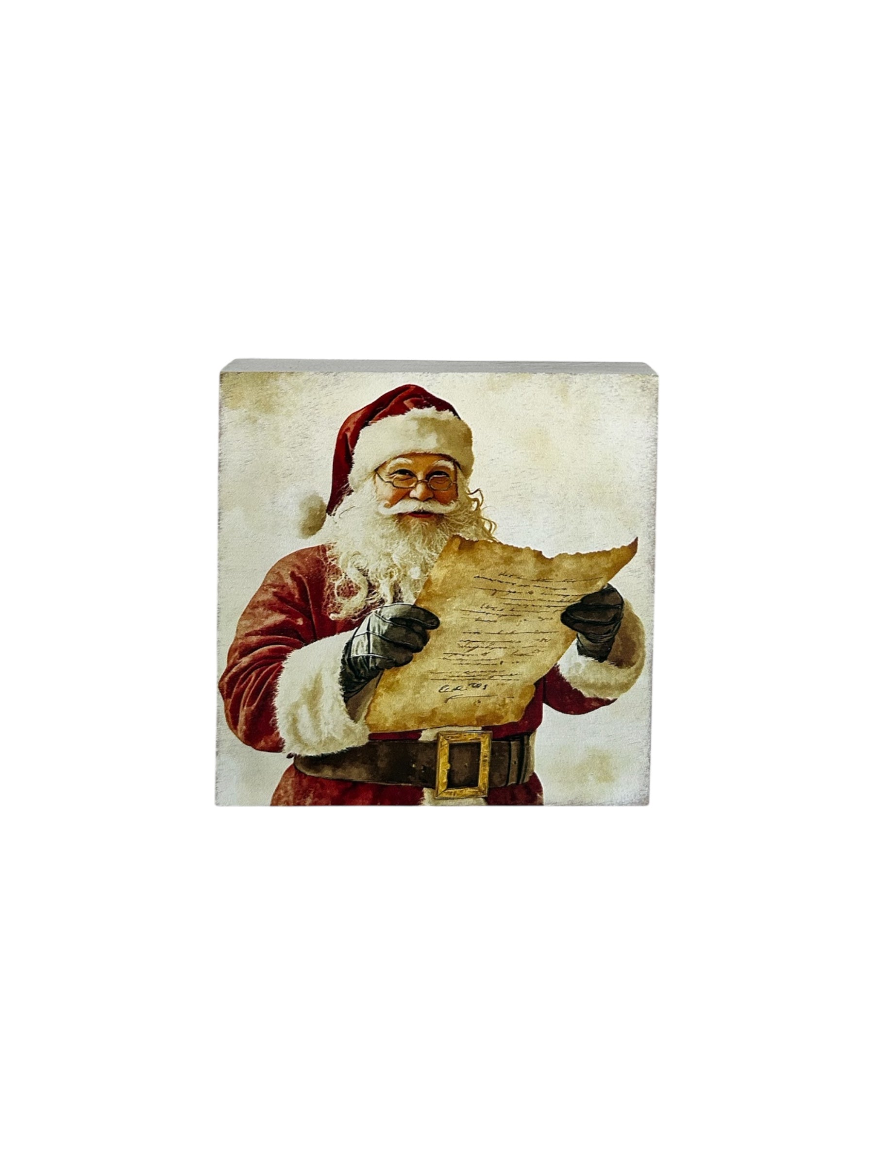 Santa Claus - Rustic Wood Block Sign Winter Snowman Decor