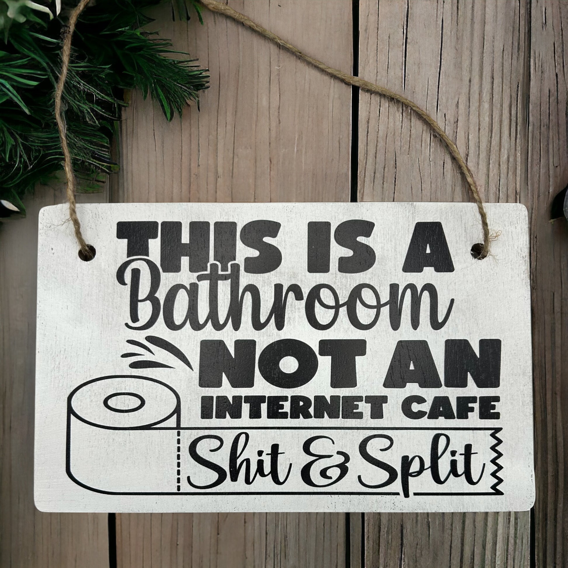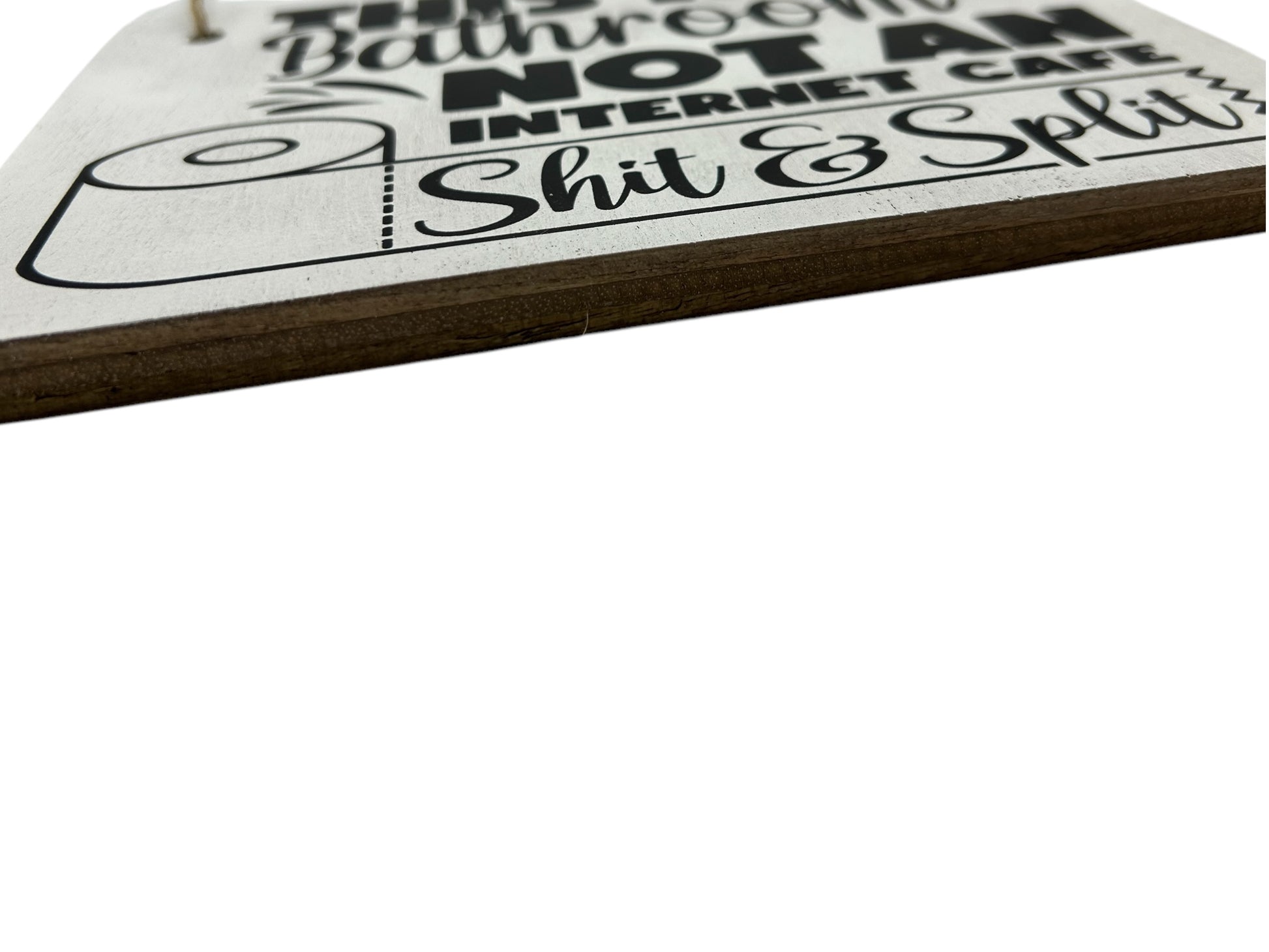 Shit and Split - Rustic Funny Bathroom Hanging Wood Sign