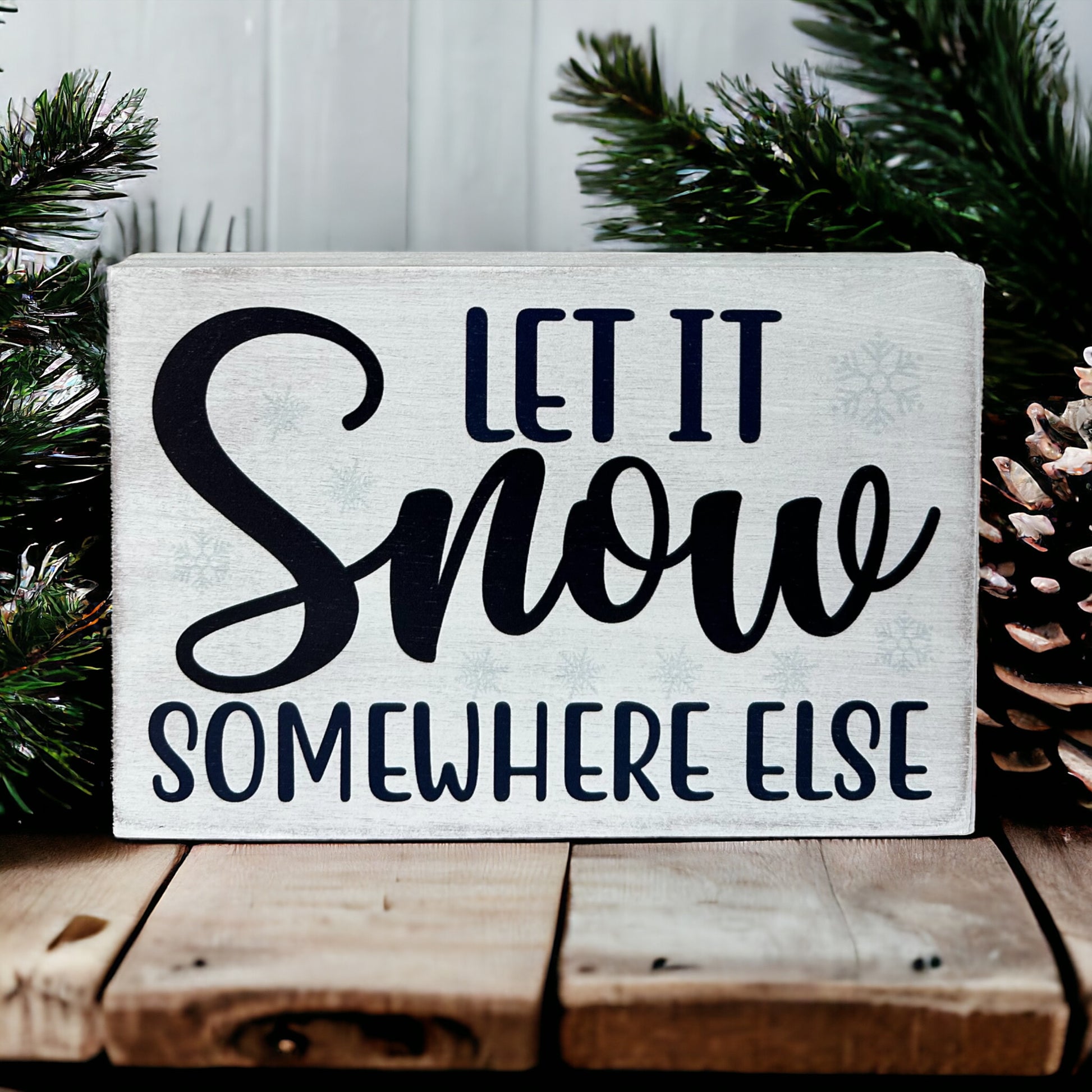Snow Somewhere Else - Funny Rustic Winter Shelf Sitter