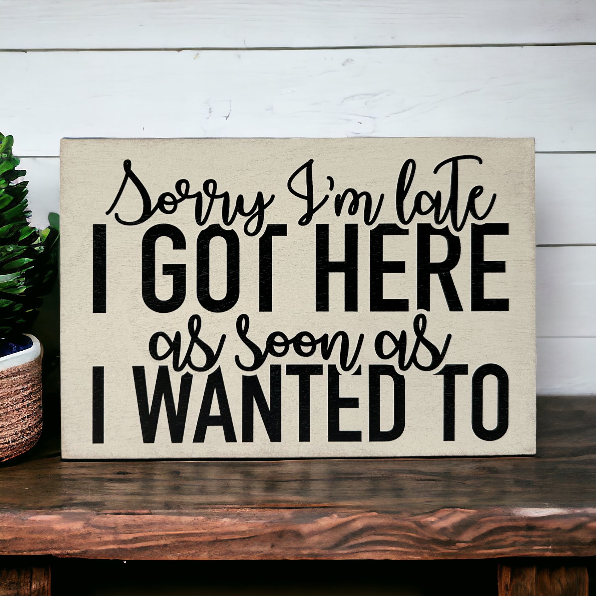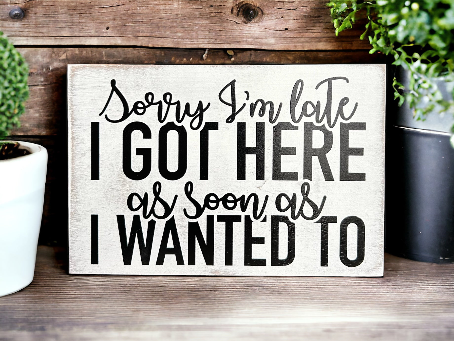 Sorry I'm Late - Funny Wood Sign 4” x 6”