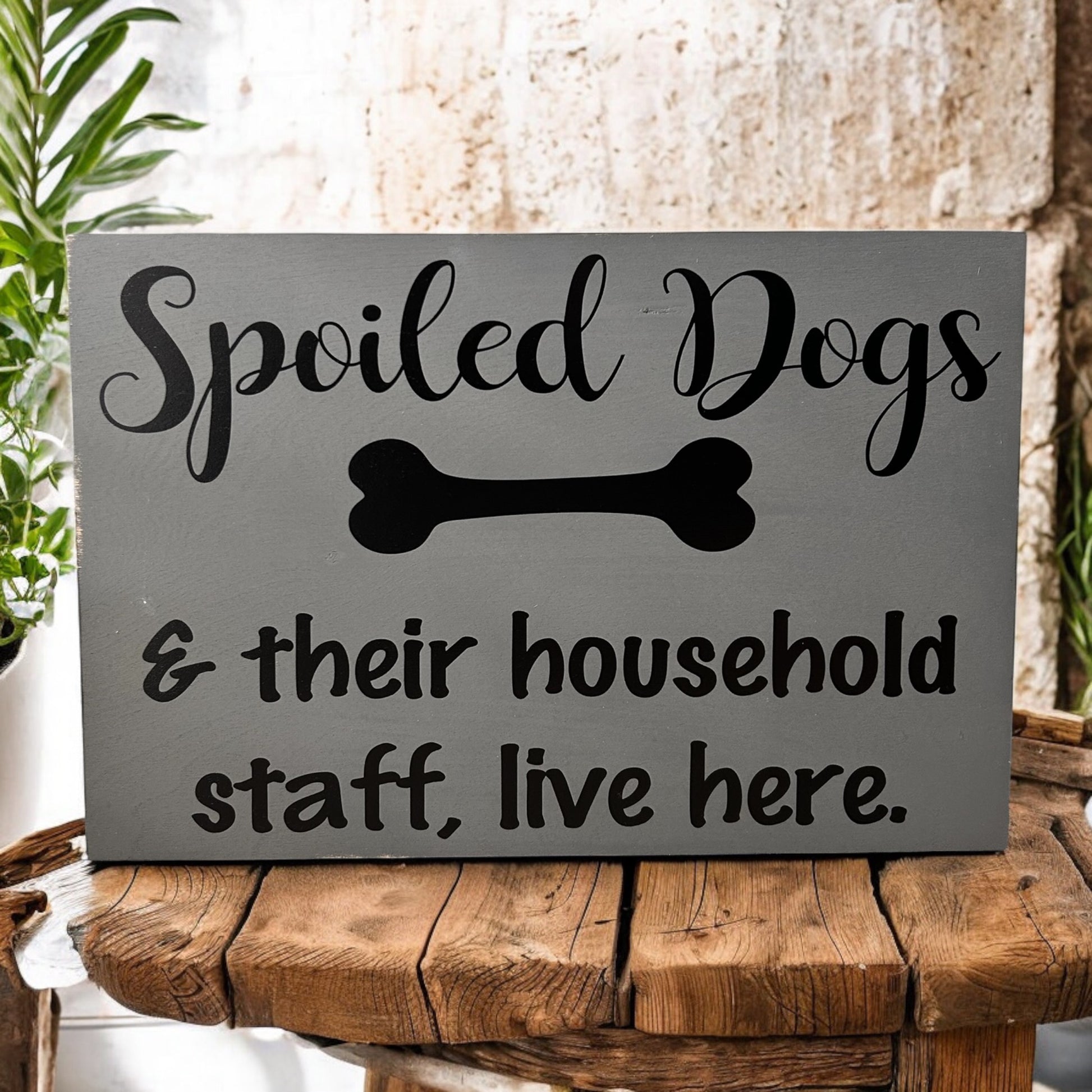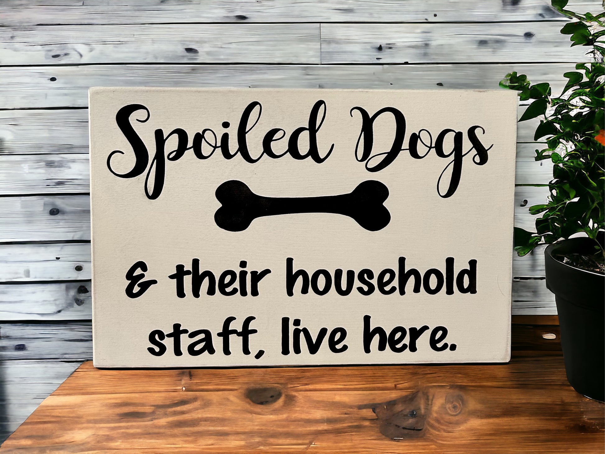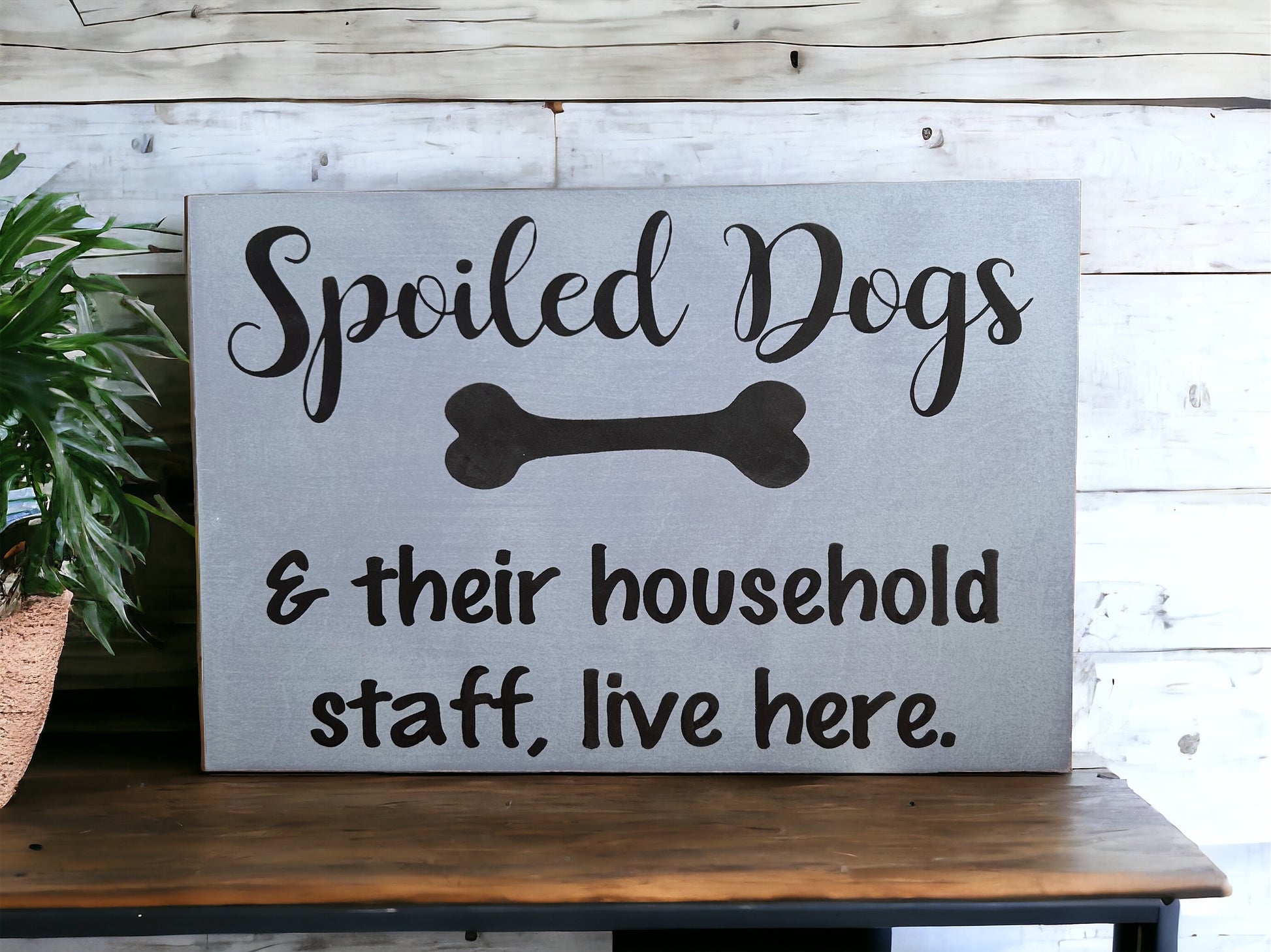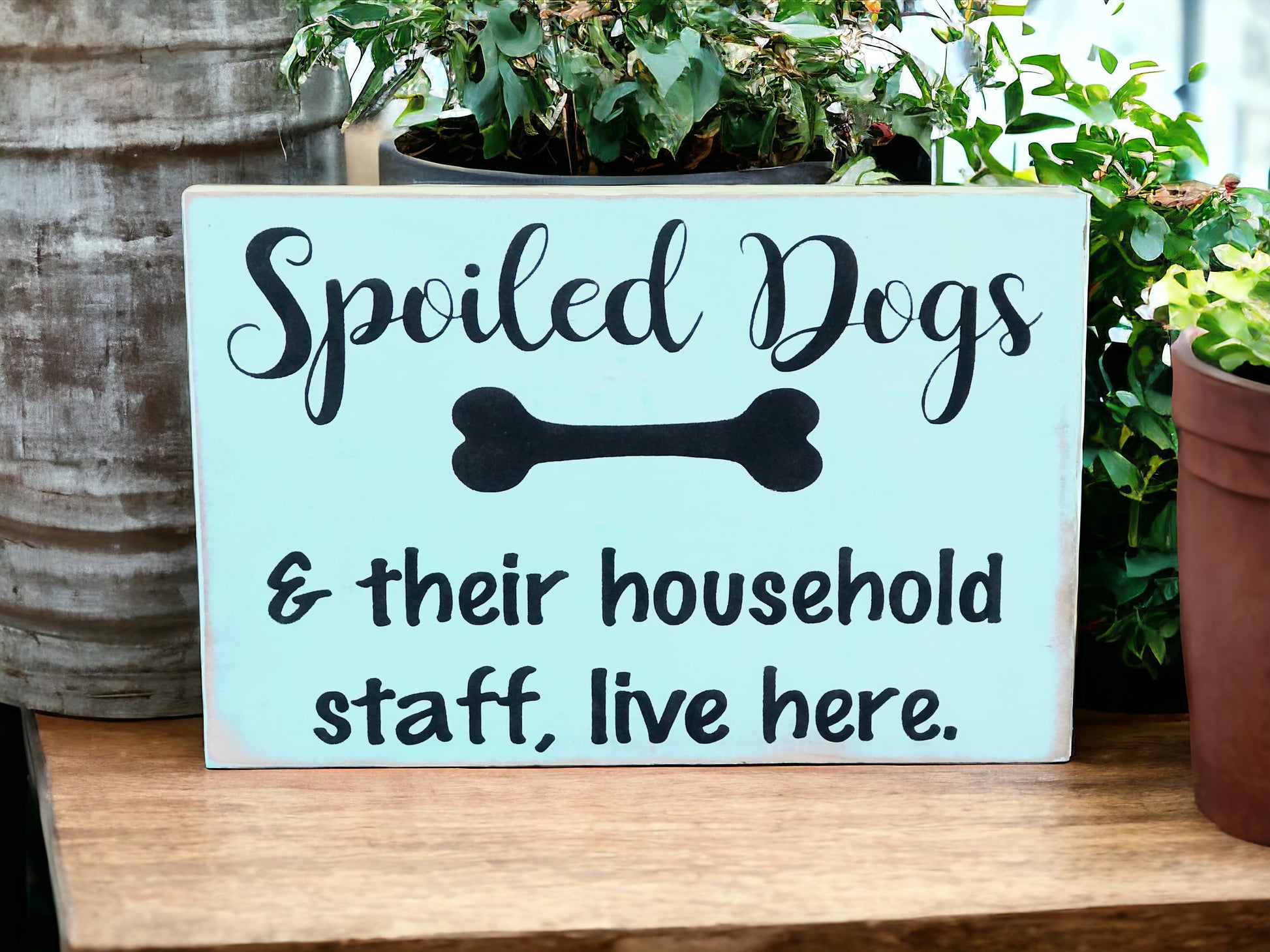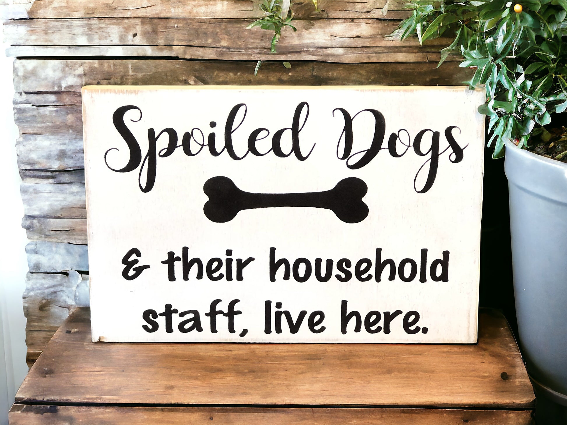 Funny wood sign for your dog loving customers! All of our signs are handmade in the USA on 3/4" hardwood plywood with finished back. A tough screwed on hanger added for easy hangin. Felt pads added to keep the walls safe from scuff marks. Due to the artistry of painting and distressing, no two signs will be exactly the same.