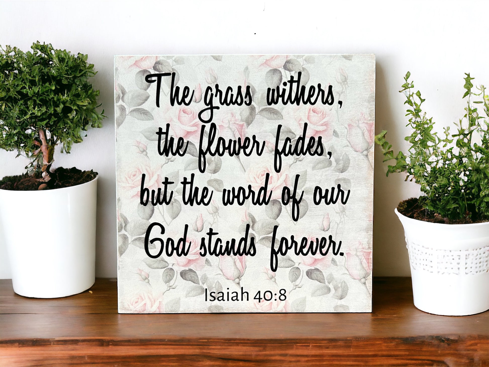 The Grass Withers - Isaiah 40:8 - Rustic Wood Sign