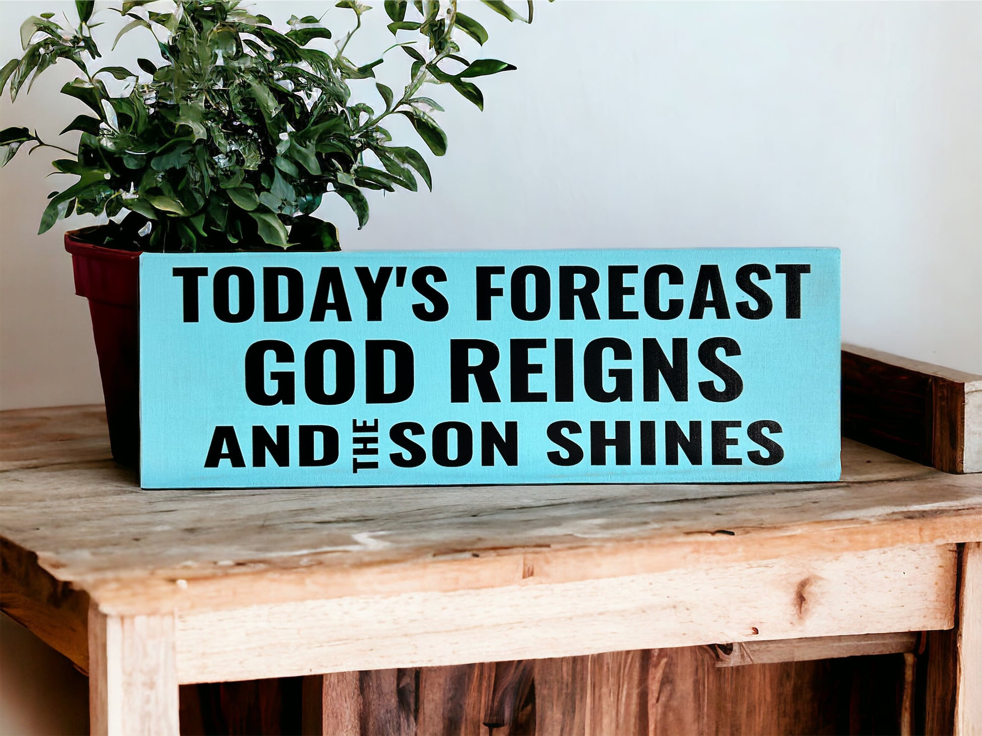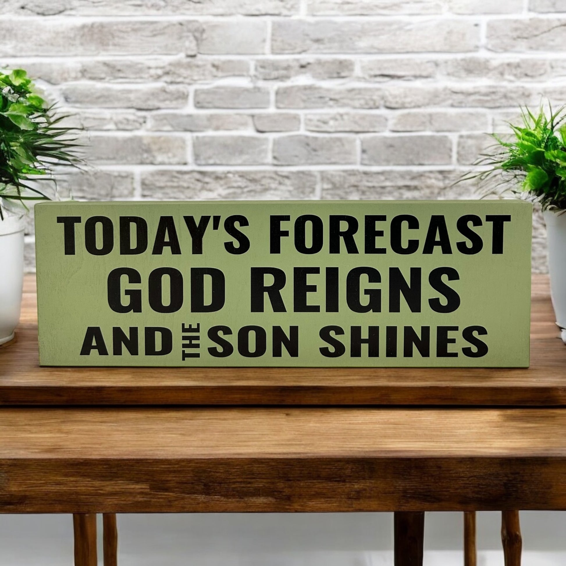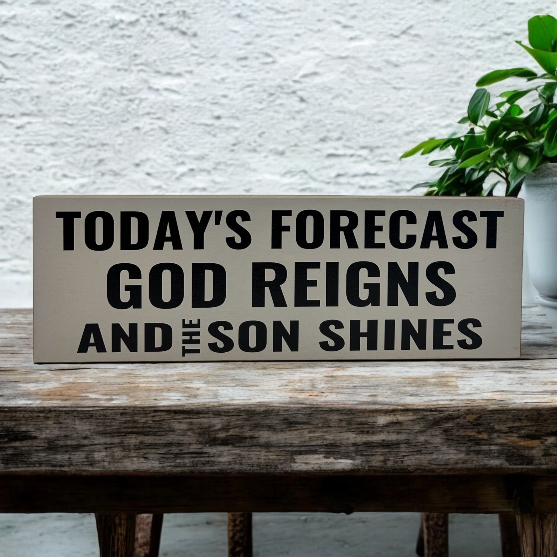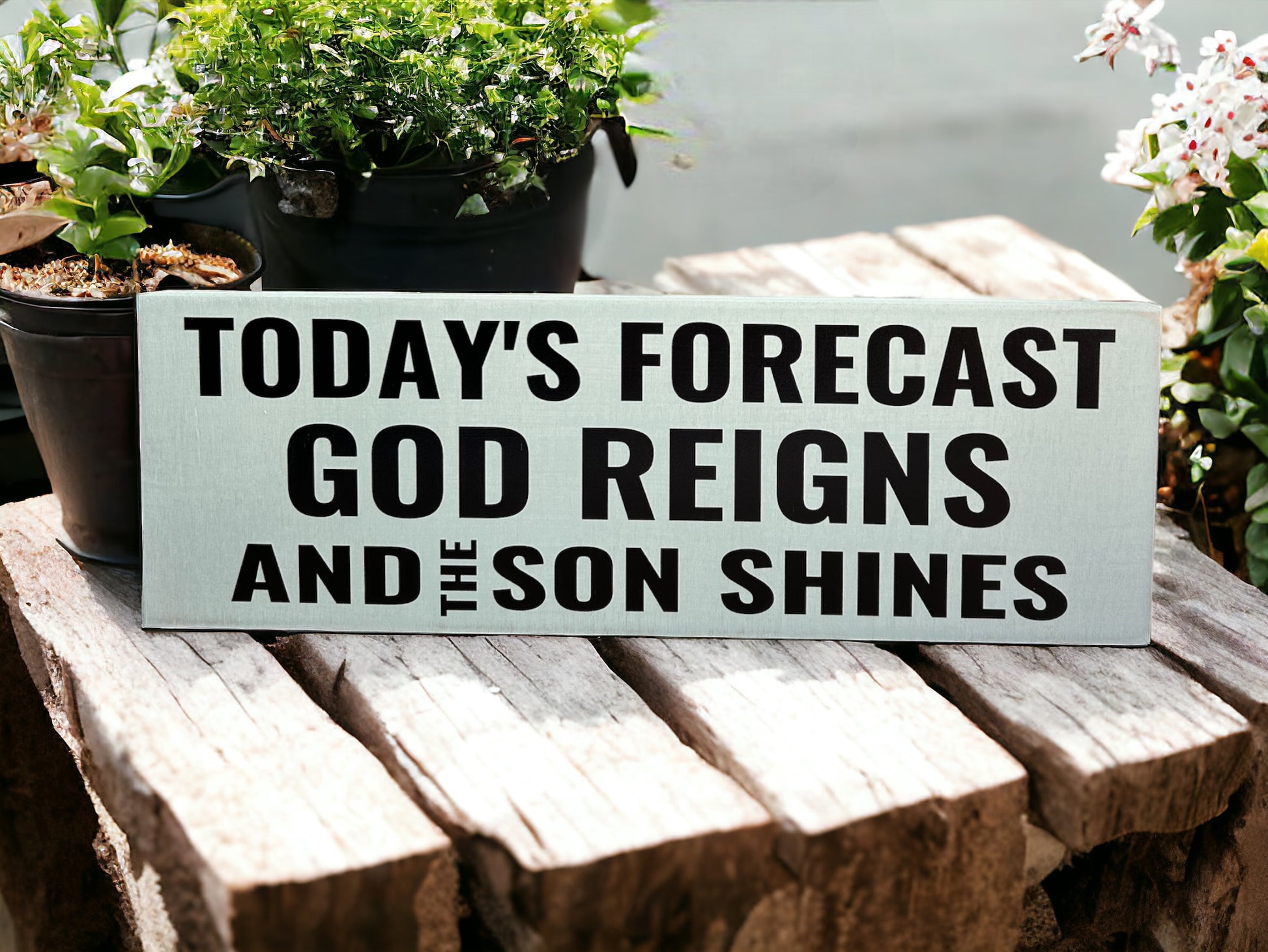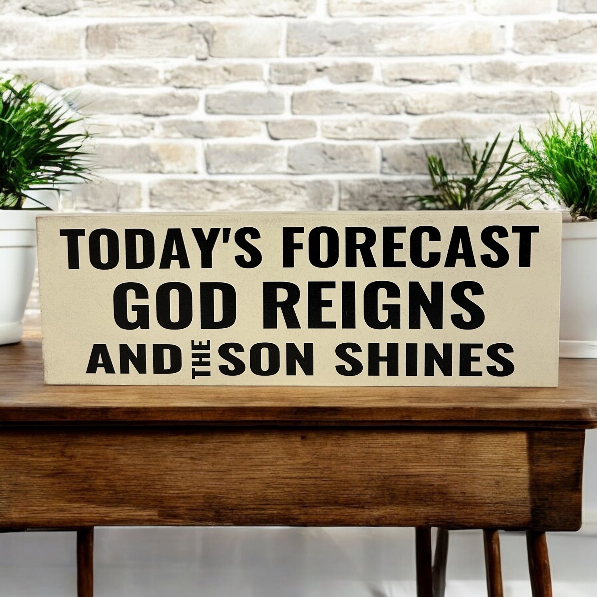 Today's Forecast God Reigns and the Son Shines - Rustic Wood Sign
