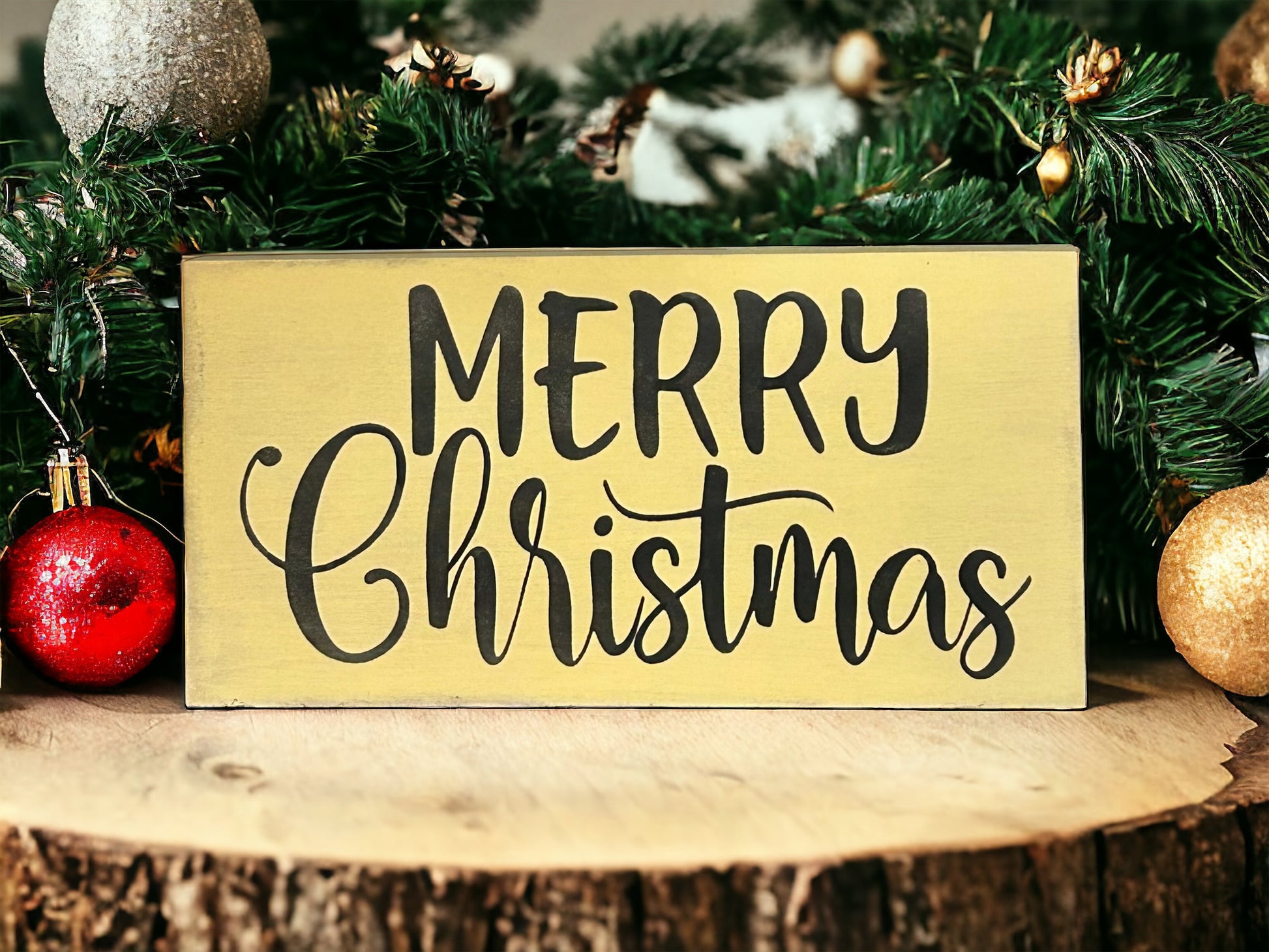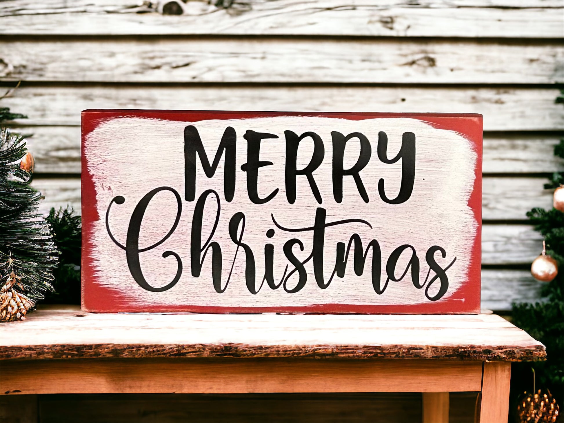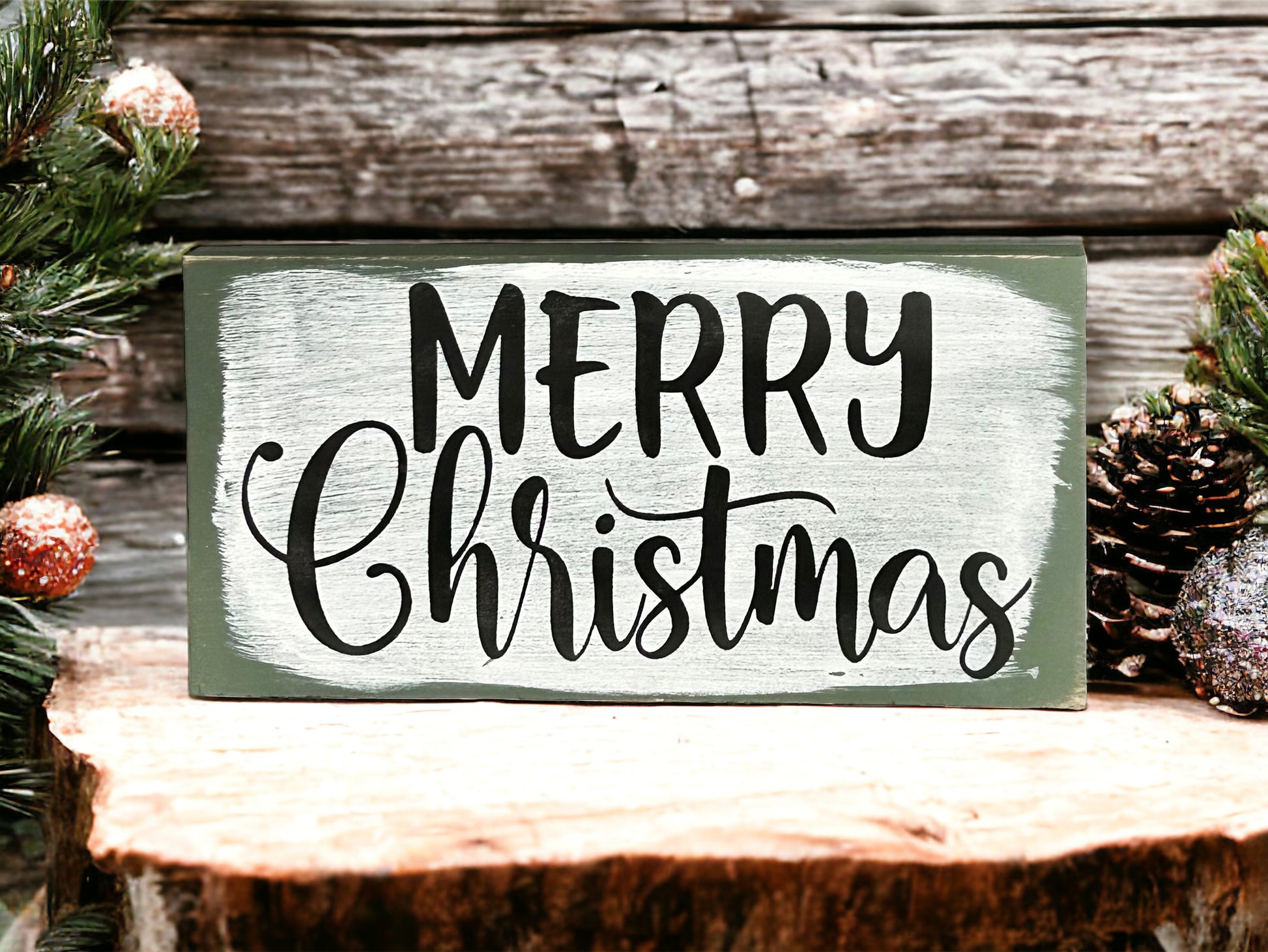 Add to your home's Winter/Holiday décor with this Merry Christmas wood sign. All of our signs are handmade in the USA on 3/4" plywood with finished back. Hand painted and sealed. Due to the artistry of hand painting and distressing, no two signs will be exactly the same.
