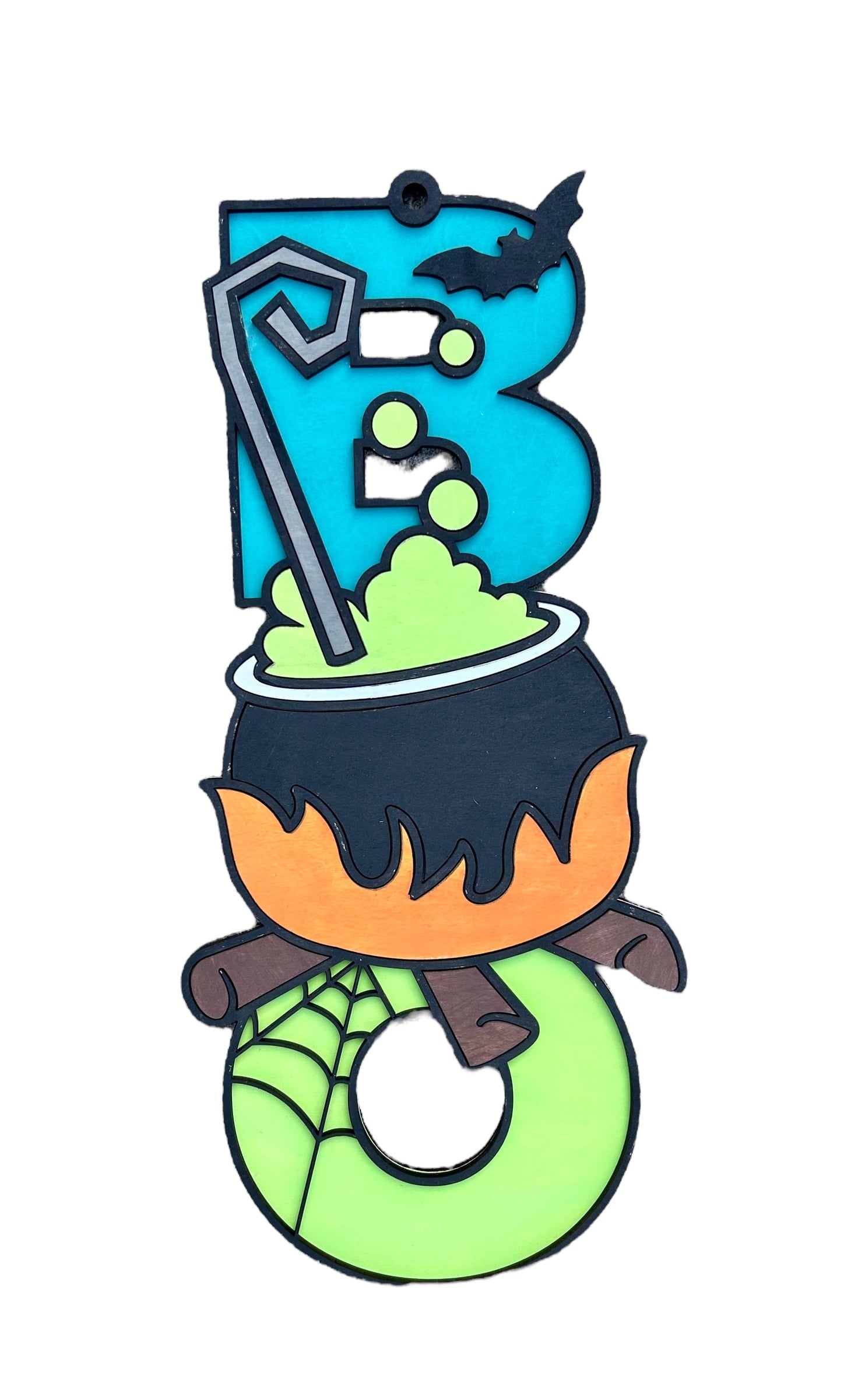 Boo Cauldron HalloweenWood Door Hanger