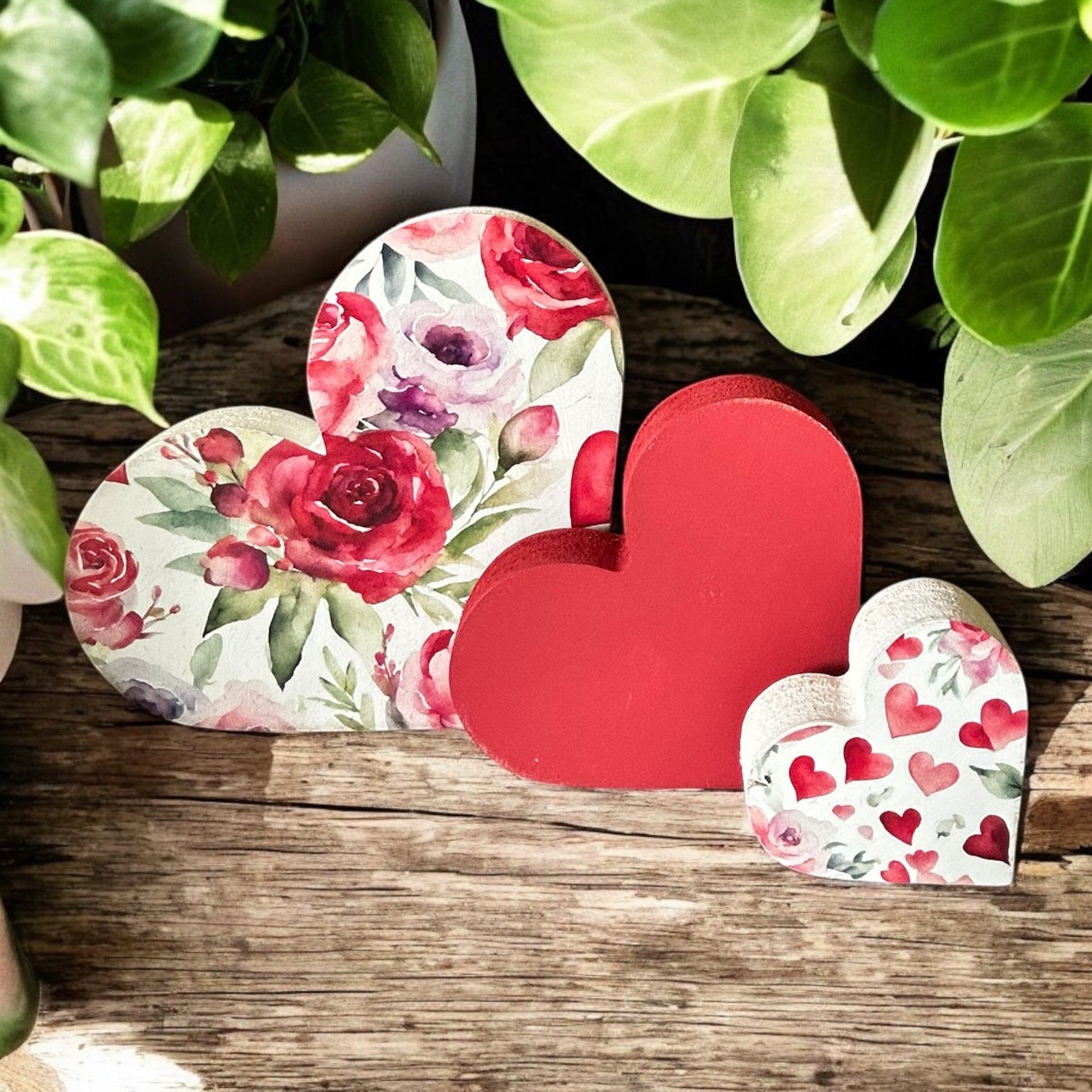Valentine’s Day Wood Hearts - Watercolor Floral Design