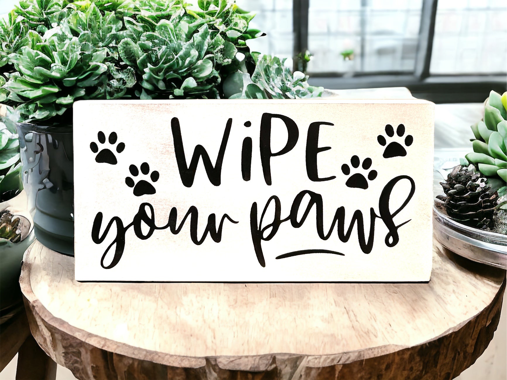 Transform your home into a welcoming haven for pets and guests alike with our "Wipe Your Paws" Wooden Sign. Perfect for pet owners or as a thoughtful gift for animal lovers.