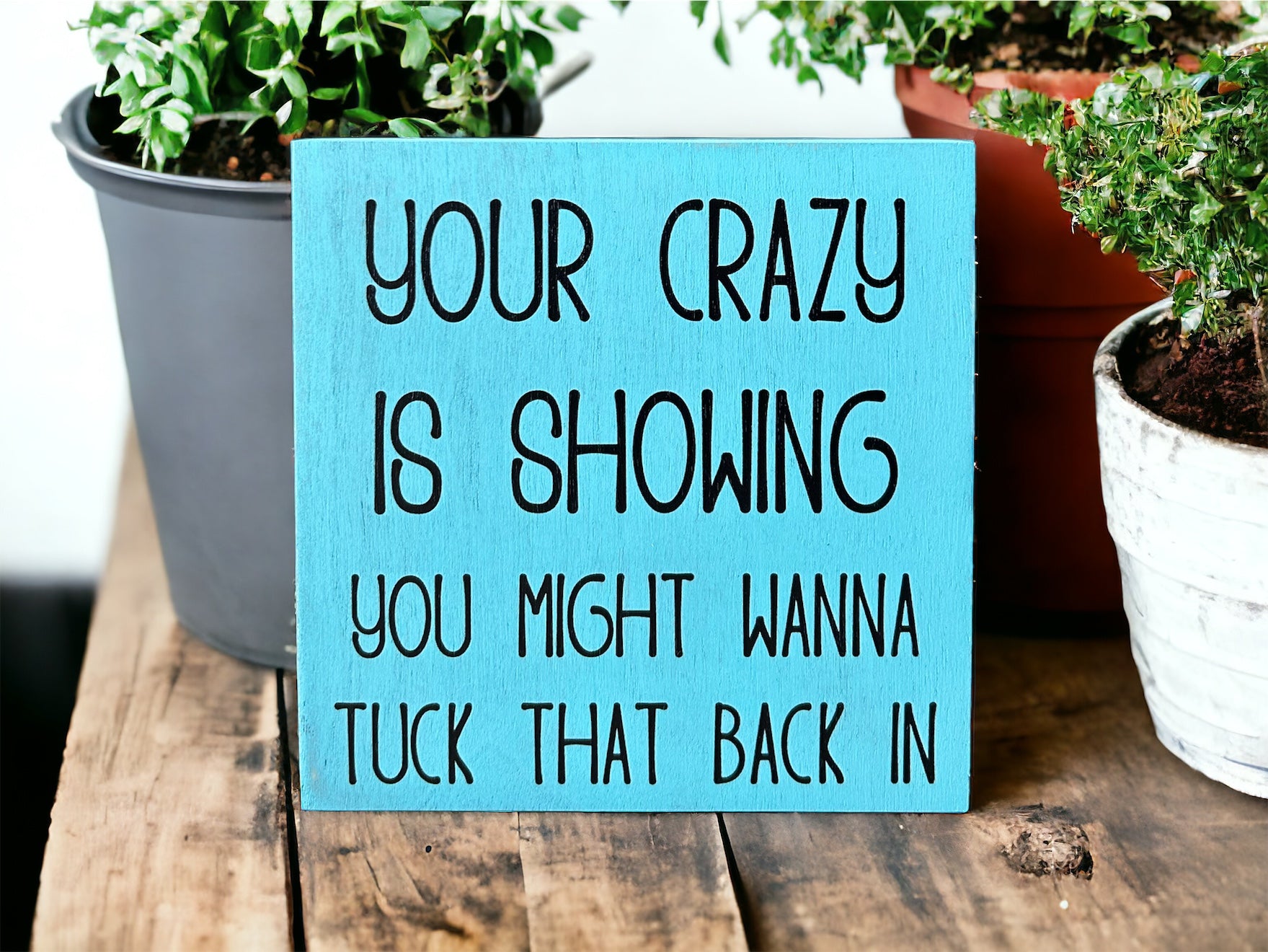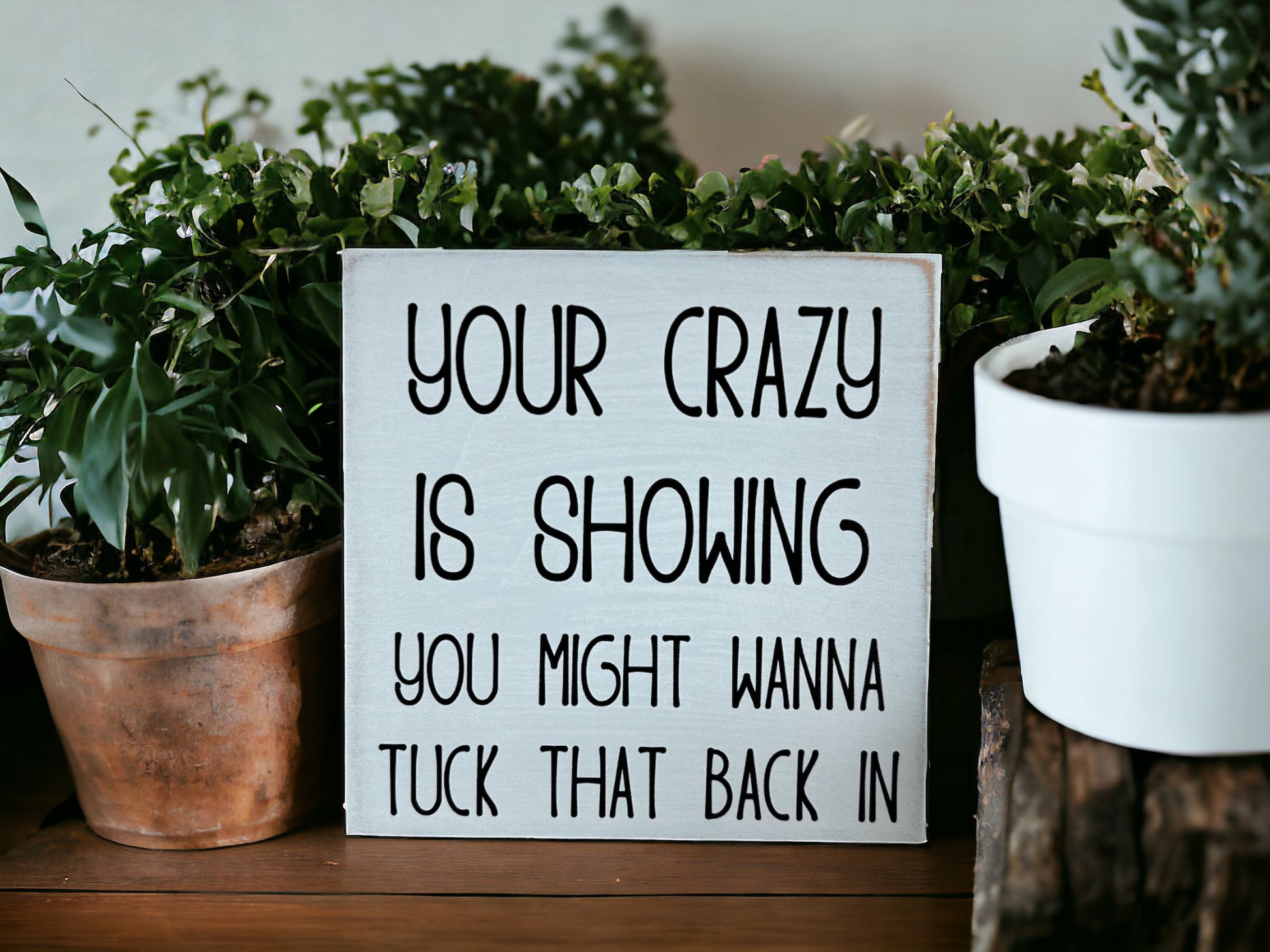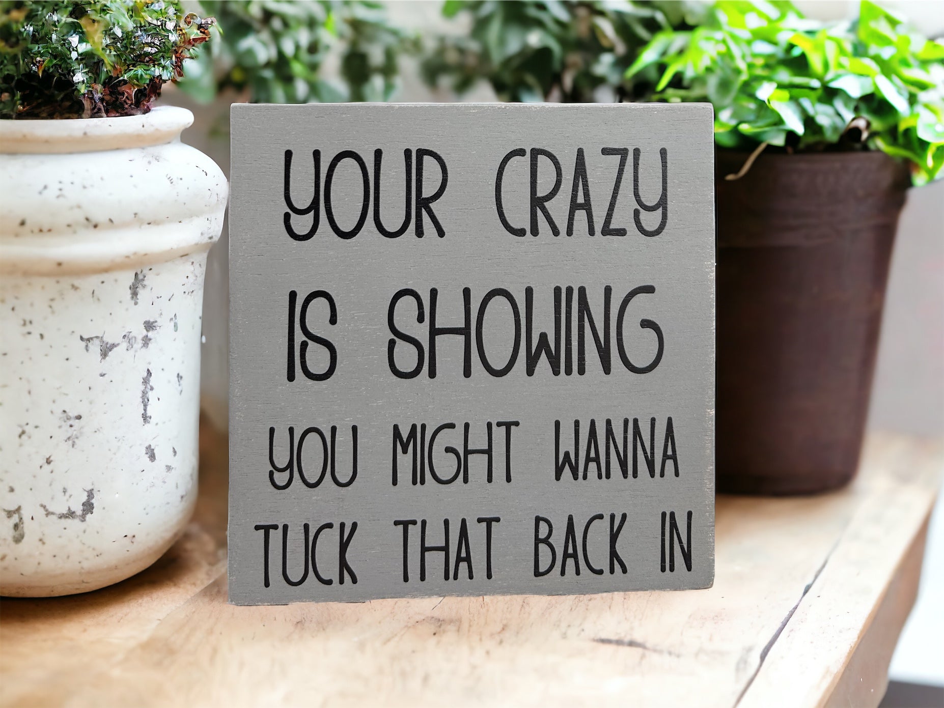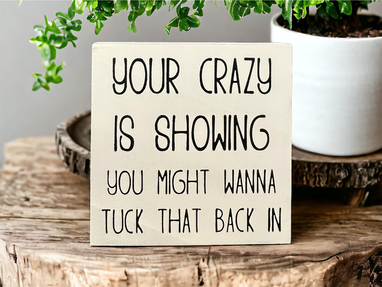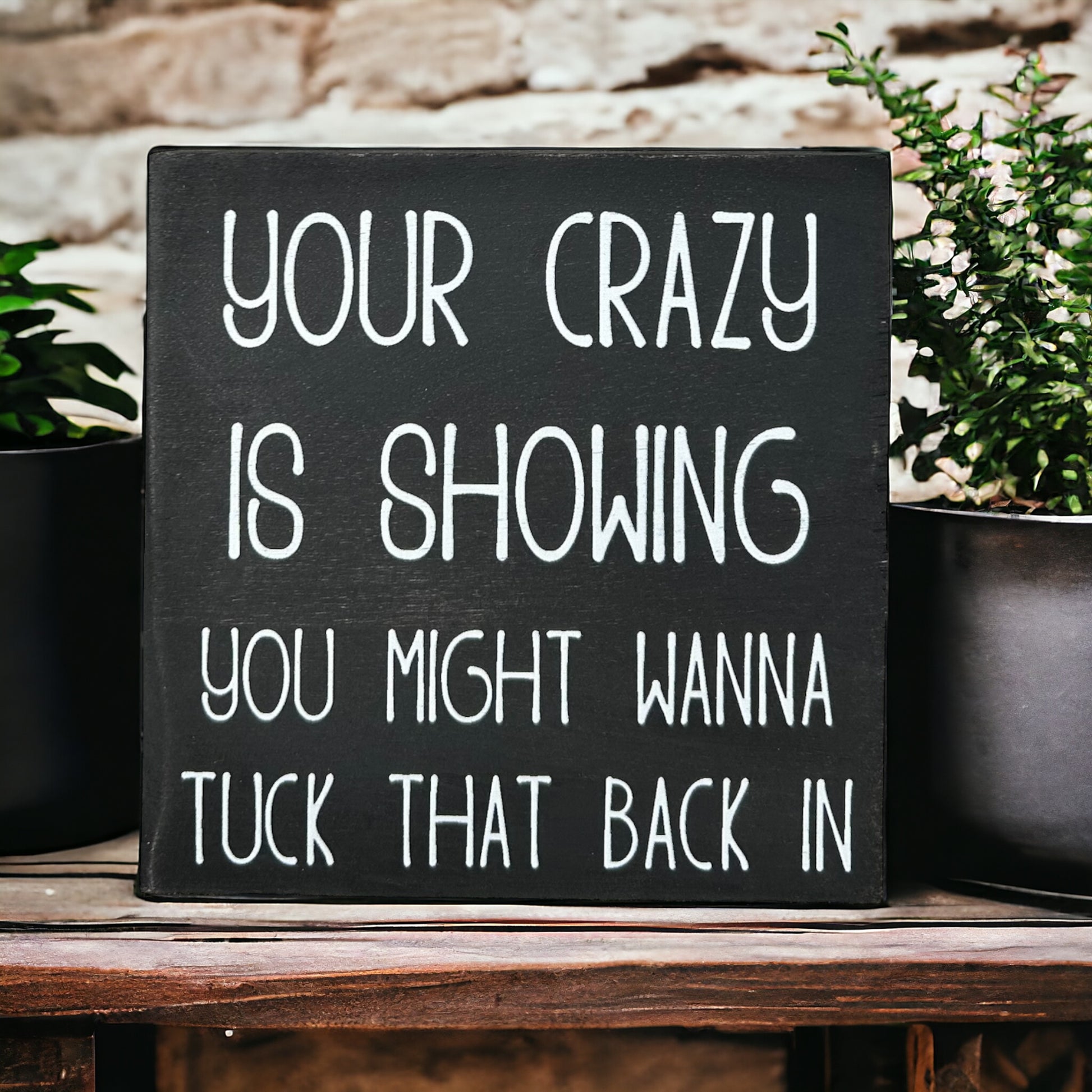 Your Crazy is Showing - Funny Rustic Shelf Sitter